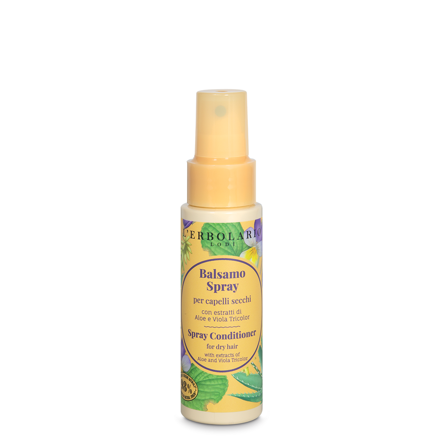Questo Balsamo Spray è perfetto per prendersi cura dei capelli secchi e aridi, grazie in particolare all’azione addolcente e antidisidratante degli estratti di Aloe e di Viola Tricolor di nostra produzione, che regalano morbidezza e setosità alle chiome. Contiene inoltre l’olio di Jojoba, nutriente e districante, un agente districante derivato all’amido di Patata e la Provitamina B5, che rendono i capelli più facili da pettinare.